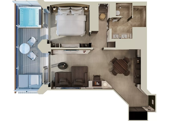 | Ocean Suites - Ocean Grand Terrace Suite Suita 28 m² + kúpeľňa 4 m² + terasa so sedením a pohovkou 11 m². 6/7. paluba. Spálňa s obývacou časťou, šatník. Minibar, kávovar, vodná kanvica, ďalekohľad, sejf, kúpeľňa so sprchou. Fľaša šampanského na privítanie. 6, 7. paluba. Maximálna kapacita 2 dospelé osoby + 1 dieťa do nedovŕšených 18 rokov. | 6 750 € 6 750 € za osobu | ||