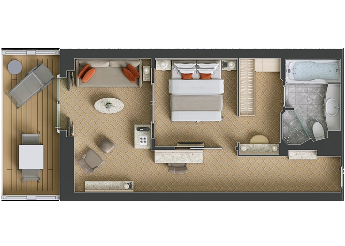 | SV - Superior Veranda Suite 30 m² + balkón 6 m². 7,8,9. paluba. Max 3 osoby. | 19 425 € 19 425 € za osobu | ||